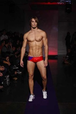 Shall we end this post with some male models on the runway in their Aussiebum red swimsuits?
