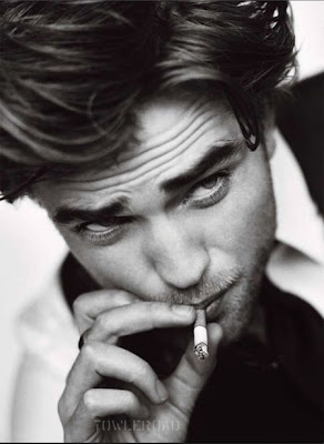 For our friends who google “Robert Pattinson smoking”. We don’t know whether you want to see a picture of him smoking a cigarette or maybe a cigar or you just want a smoking hot picture of the Twilight star. Whatever you are looking for, we think this picture covers both. He is smoking a cigarette and he looks hot lying in bed in his muscle shirt (do the Brits call this kind of shirt “wifebeaters“?).